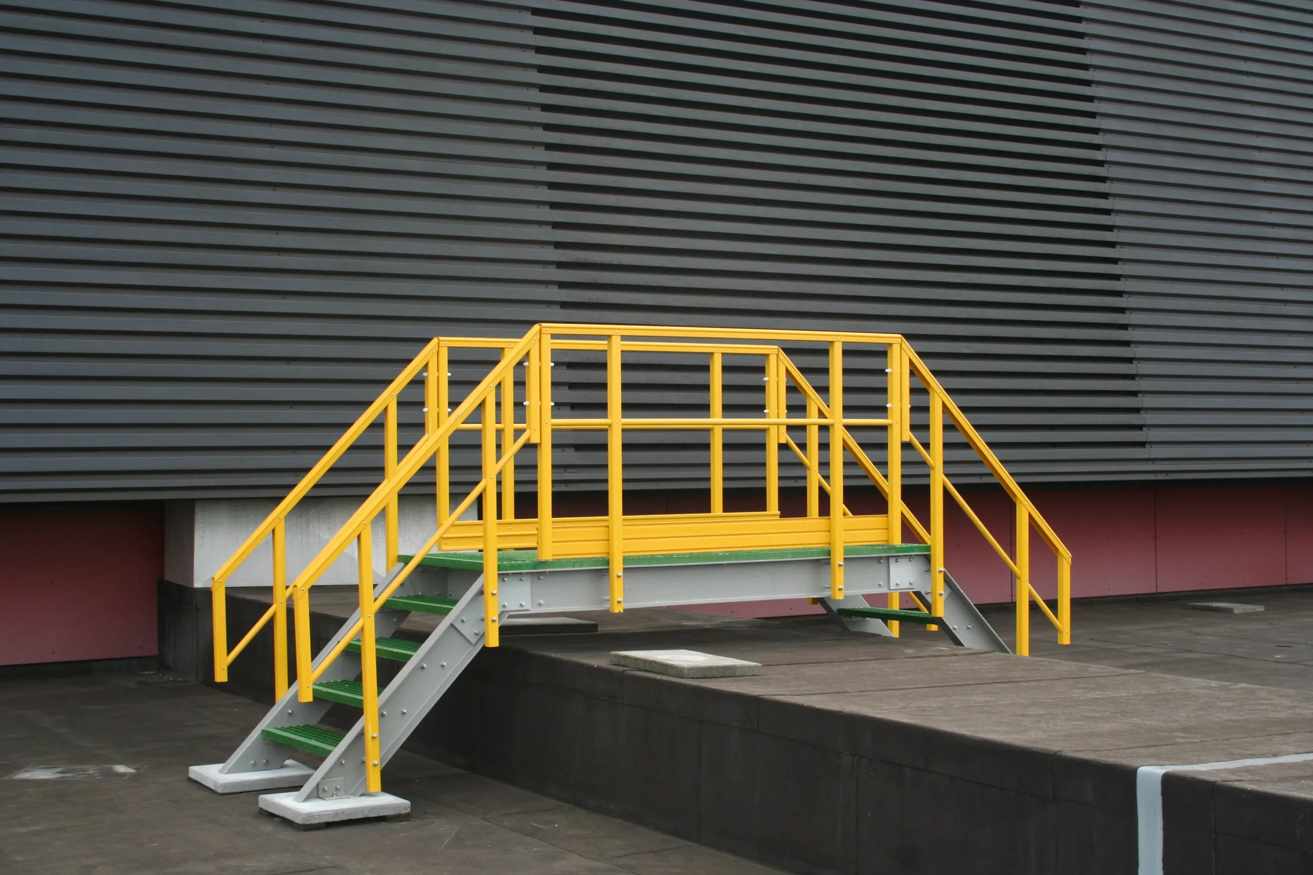 Het Glasvezel Versterkt Kunststof overstapbordes van Fiberstruct is een compleet, modulair systeem bestaande uit leuningwerk, roosters en trappen. Het overstapbordes wordt vaak toegepast in omgevingen waar relatief kleine hoogteverschillen overbrugd moeten worden. Met name in branches als de chemie,  olie & gas, offshore, havens en civiele techniek worden de constructies veel toegepast.
